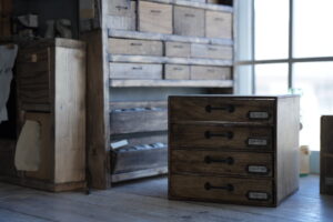 深さの浅い引き出しが何段にもなった