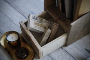 手帳とお香を一緒に収納できる、引き出し付きの小さな棚✨