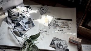 コラージュをしたり、そのとき強く思ったことを書いたり、